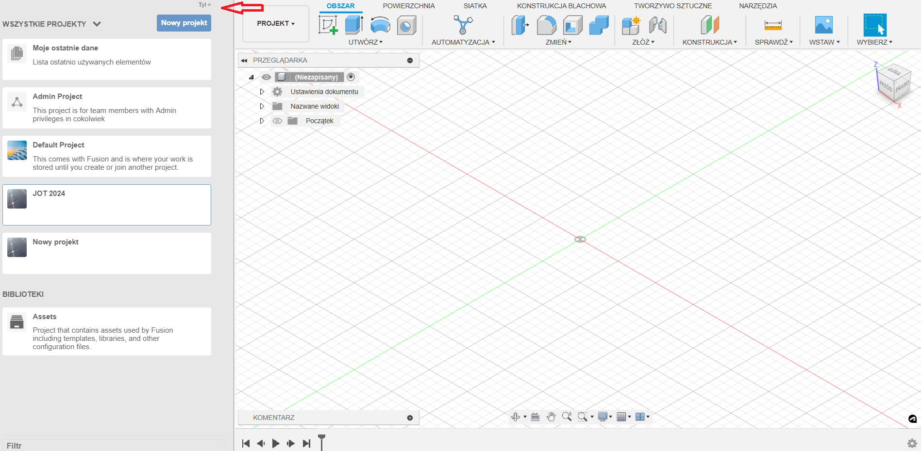 all projects (cokolowiek) i świeci na niebiesko nowy projekt