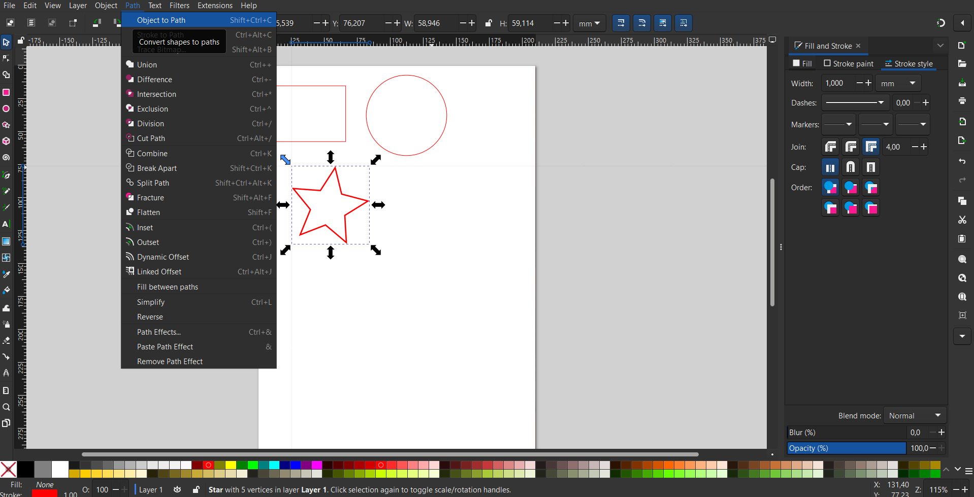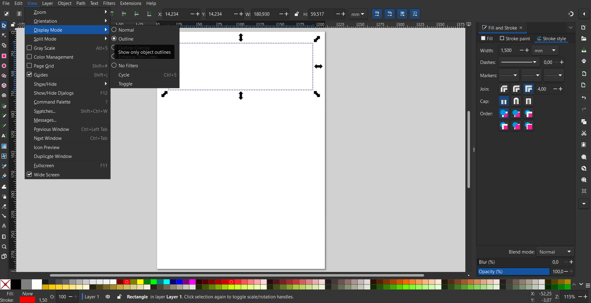 grubość obrysu