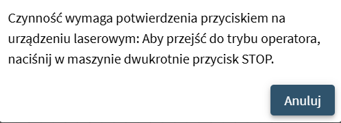→ UWAGA!!! cały czas musimy być przy laserze, aby kontrolować czy przypadkiem nic się nie dzieje niepożądanego, np. czy nie zapali nam się sklejka/materiał