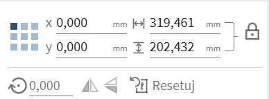 → przejechać dyszą w miejsce początkowe naszej sklejki - strzałki oś X i Y